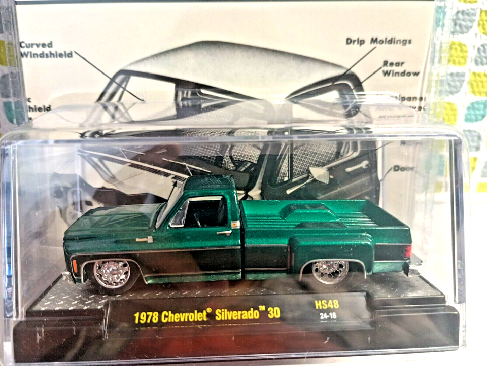 Hey les collectionneurs de miniatures et les fans de pick-up américains ! Voici un modèle réduit M2 Machines de la Chevrolet Silverado 30 de 1978, à l'échelle 1:64. Il est en die-cast (métal moulé), de couleur verte, avec plein de détails typiques de la marque : jantes réalistes, intérieur détaillé, peut-être même un lit de chargement texturé. Référence 31500-HS48, fabriqué en 2024. Il est neuf, dans sa boîte d'origine, parfait pour exposer ou pour offrir. M2 Machines est réputé pour la qualité et l'authenticité de ses modèles. Que vous complétiez une collection de Chevrolet, de pick-up, ou de voitures des années 70, cette Silverado aura sa place. Les enfants (et les grands enfants) adorent. Un petit bijou de nostalgie et de mécanique en miniature. Prêt à rejoindre votre vitrine ?